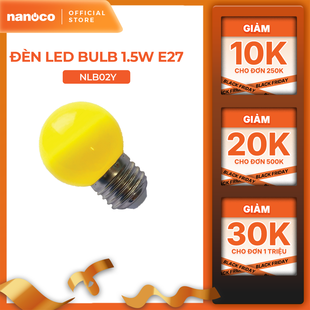Bóng bulb LED E27 Nanoco model NLB0 1.5W (màu xanh, lục, cam, hồng, đỏ, tím, trắng, vàng)