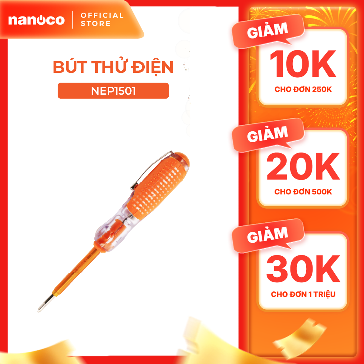 Bút thử điện Nanoco màu cam model NEP1501 loại 2 đầu vít tiện lợi