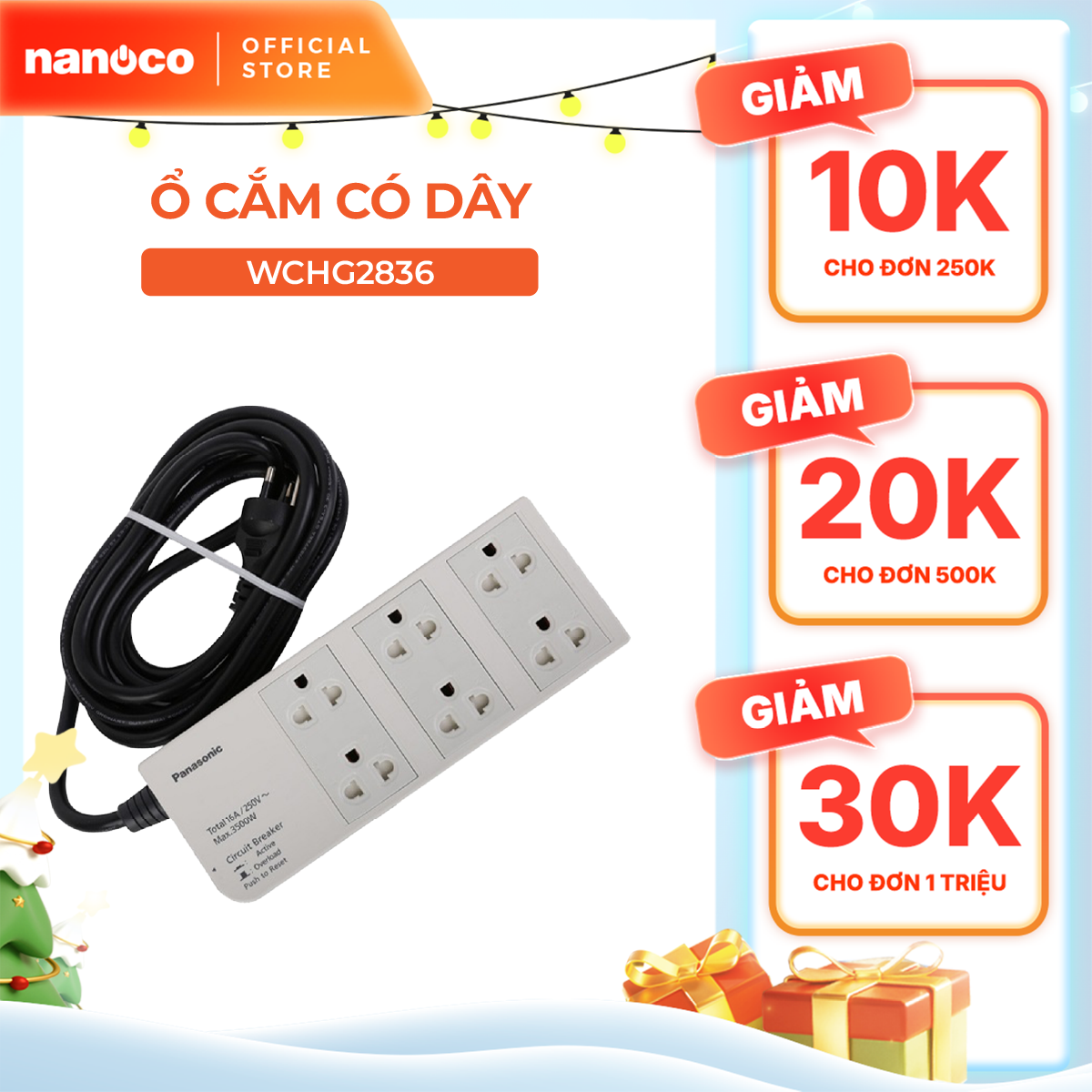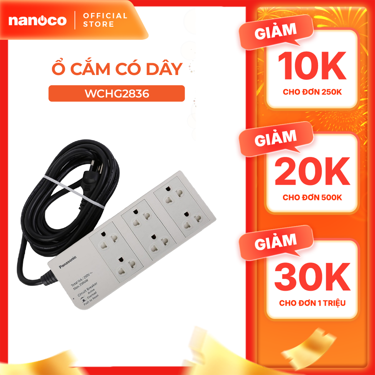 Ổ cắm Panasonic model WCHG2836 (có dây - 6 ổ cắm 3 chấu)