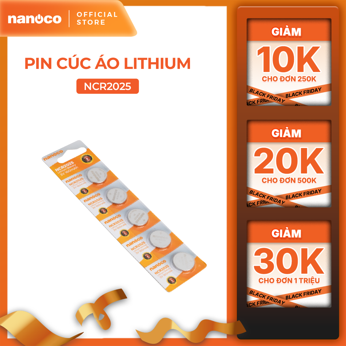 Pin Lithium 3V 160mAh/220mAh Nanoco model NCR2025/ NCR2032 (5 viên/vỉ )