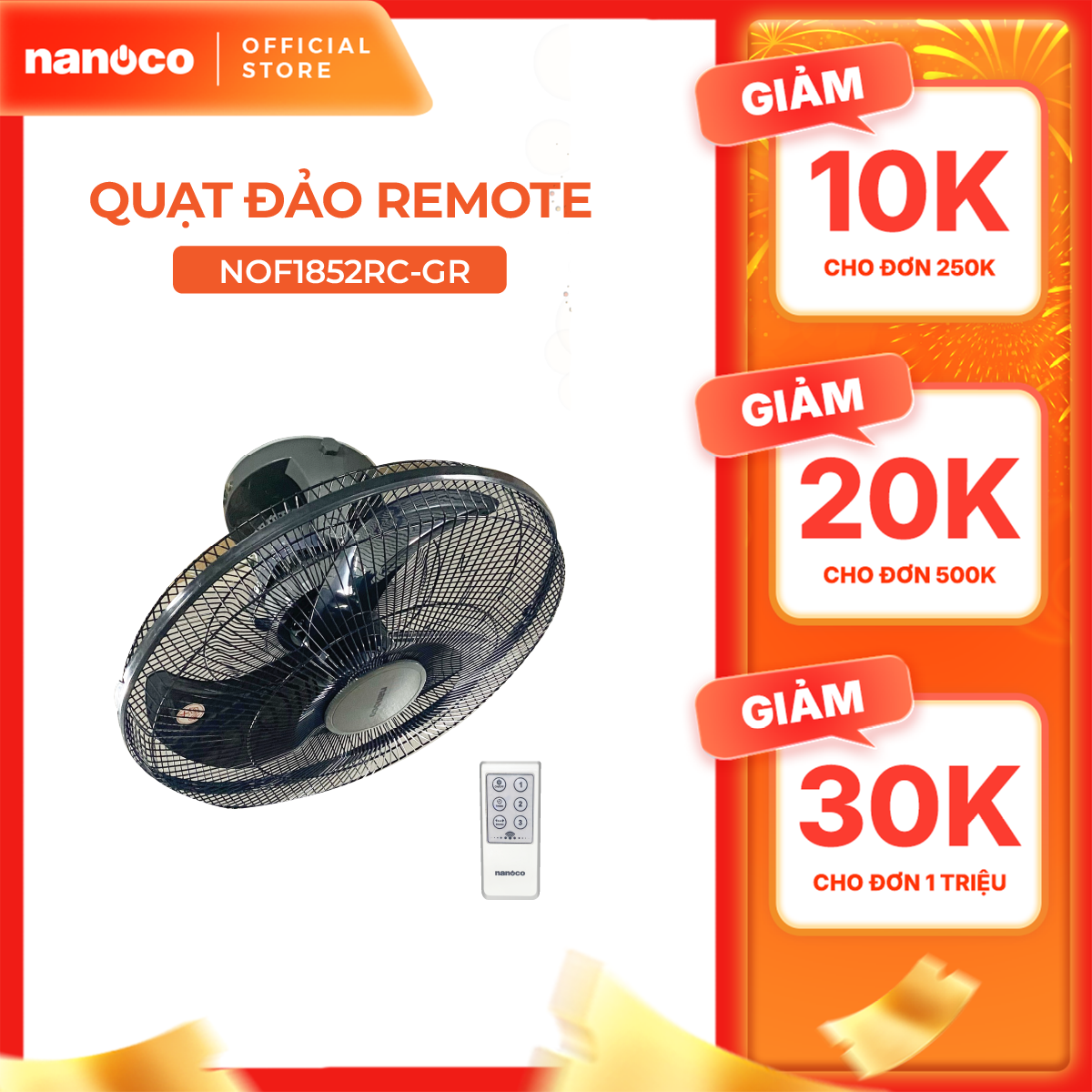 Quạt đảo bạc đạn công suất 65W Nanoco model NOF185**GR màu ghi, đường kính cánh 45cm