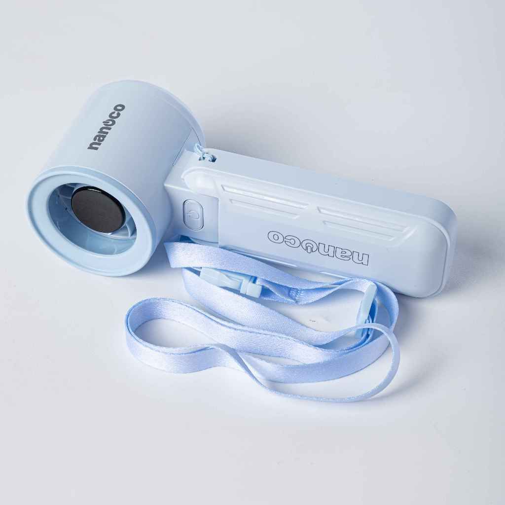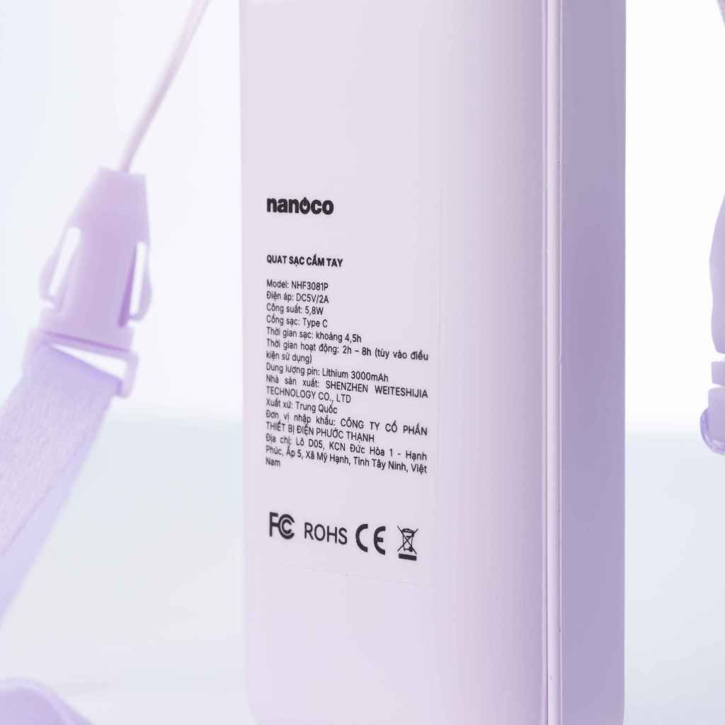 Quạt sạc cầm tay màu tím/xanh động cơ DC Nanoco model NHF3081 lithium 3000mAh công suất 5.8W