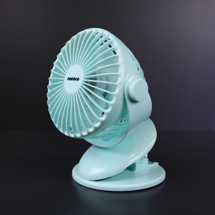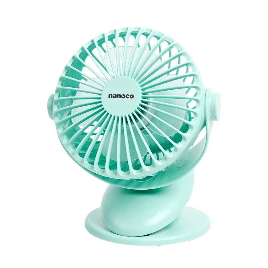 Quạt sạc kẹp 5inch Nanoco Model NRF5210G, màu xanh, sạc từ 3 giờ dùng đến 8 giờ