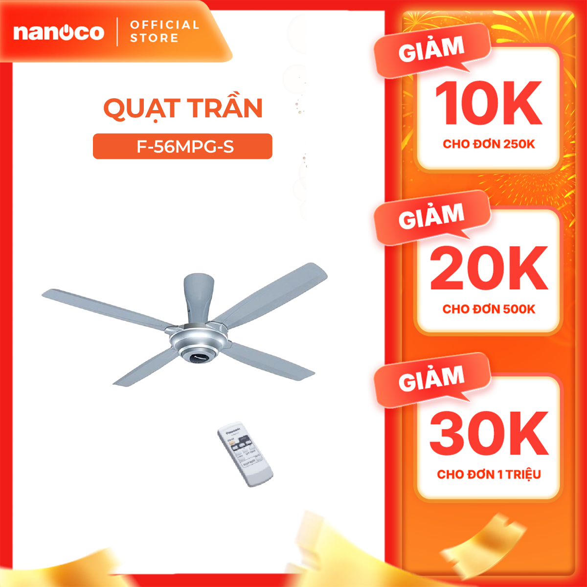 Quạt trần Panasonic model F-56MPG (màu bạc, màu vàng ánh kim - 3 chế độ gió - 59W) - KO GỒM CP LẮP