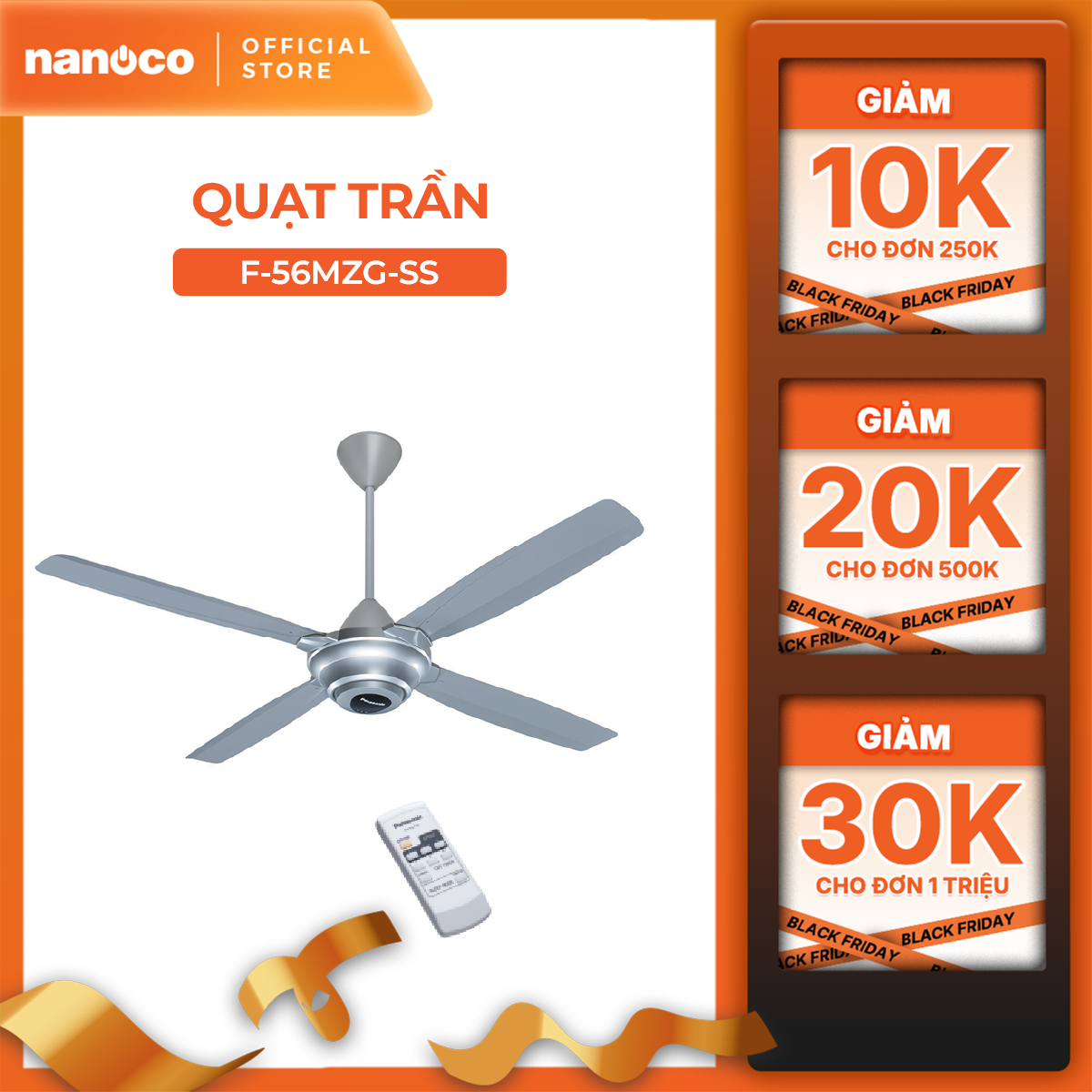 Quạt trần Panasonic model F-56MZG-S (màu bạc - 3 chế độ gió - công suất 59W) - KHÔNG GỒM PHÍ LẮP ĐẶT