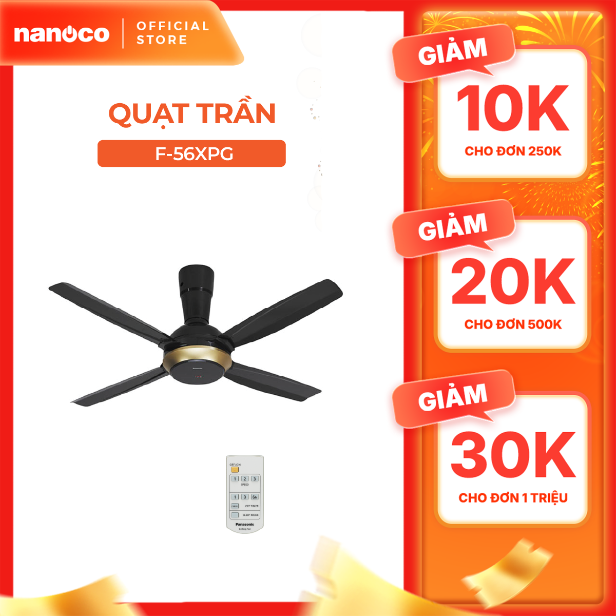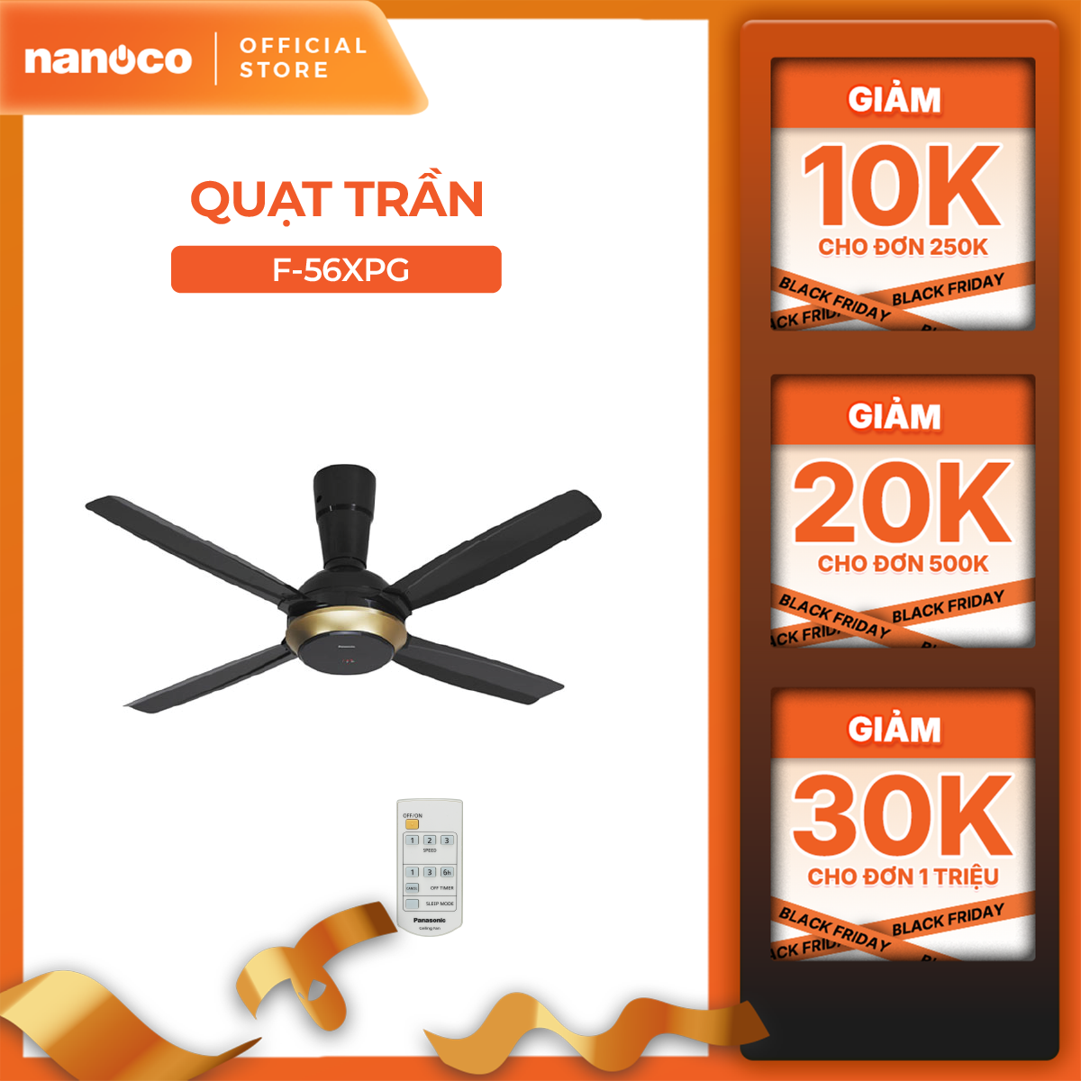 Quạt trần Panasonic model F-56XPG (màu đen, màu trắng - 3 chế độ gió - 59W) - KHÔNG GỒM PHÍ LẮP