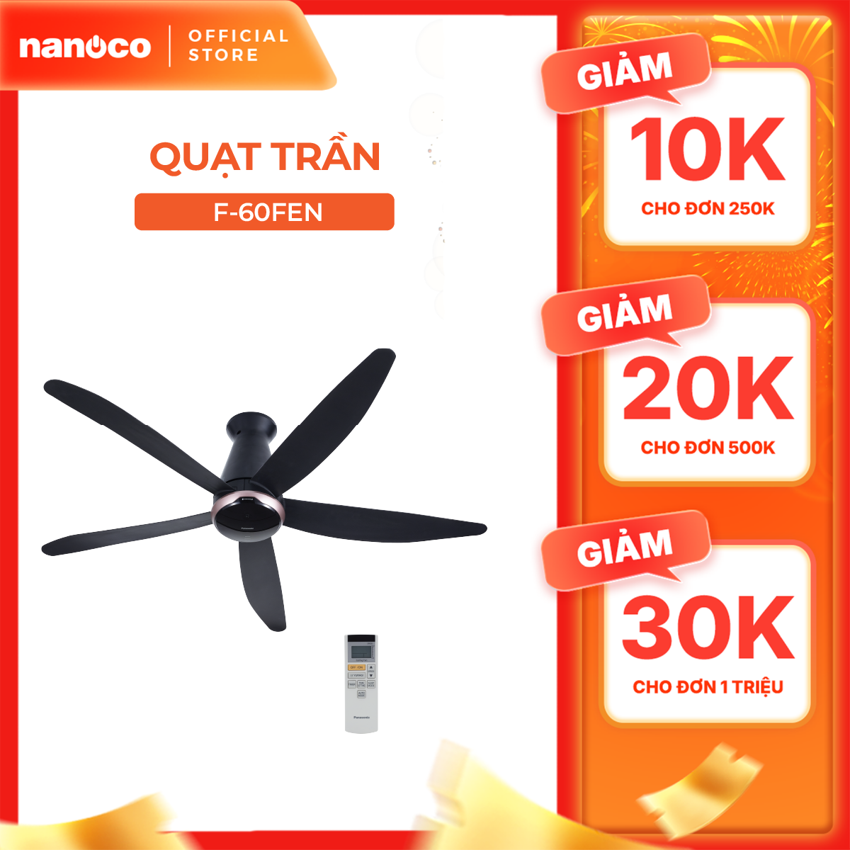 Quạt trần Panasonic model F-60FEN (màu đen - 9 chế độ gió - 40W) - KHÔNG GỒM PHÍ LẮP