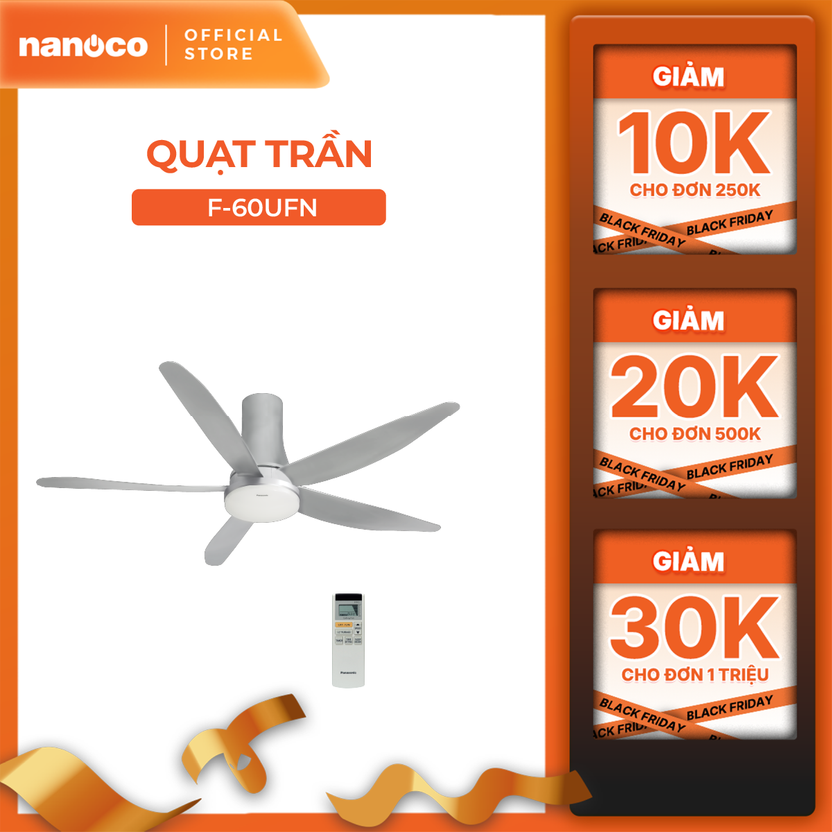 Quạt trần Panasonic model F-60UFN (màu xám bạc - 9 chế độ gió - công suất 59W) - KHÔNG GỒM PHÍ LẮP