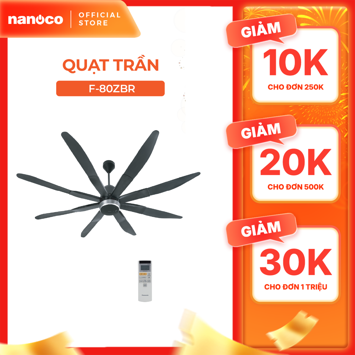 Quạt trần Panasonic model F-80ZBR (màu đen - 9 chế độ gió - công suất 57W) - KHÔNG GỒM PHÍ LẮP ĐẶT