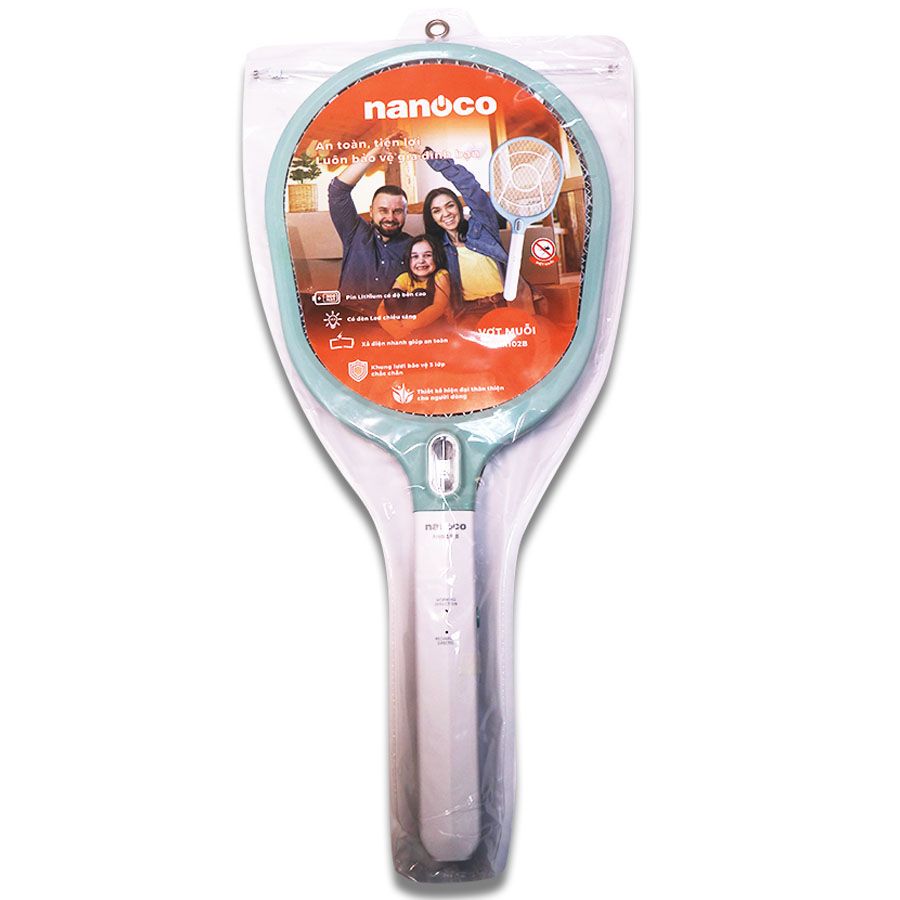 - Vợt muỗi Nanoco NMR102B được thiết kế 3 lớp an toàn, đặc biệt để xả nhanh dòng điện khi ngắt điện, không gây giật cho người dùng.